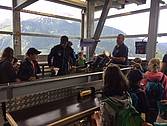 Die Bergrettung (mit Manfred, Roman, Martin, Reinhard, Fabian und Isabel) machte in der Hütte ein paar Stationen mit Erste Hilfe, Abseiltechniken, Verhalten am Berg, Knotenkunde,....